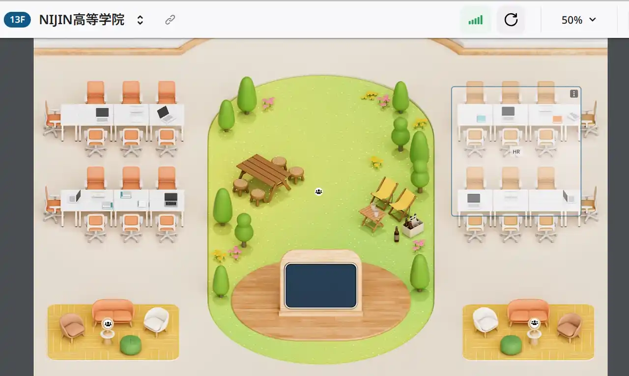 | NIJIN高等学院では、オンライン空間に広がるメタバース校舎を活用しています。 | |||||||||||||