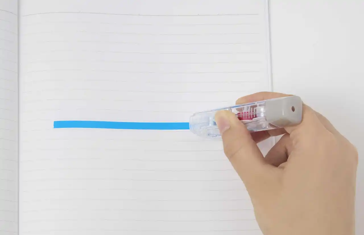 インクではなくテープ式を採用することで、従来のラインマーカーで課題とされていたにじみや、裏写りを軽減しました。 |
