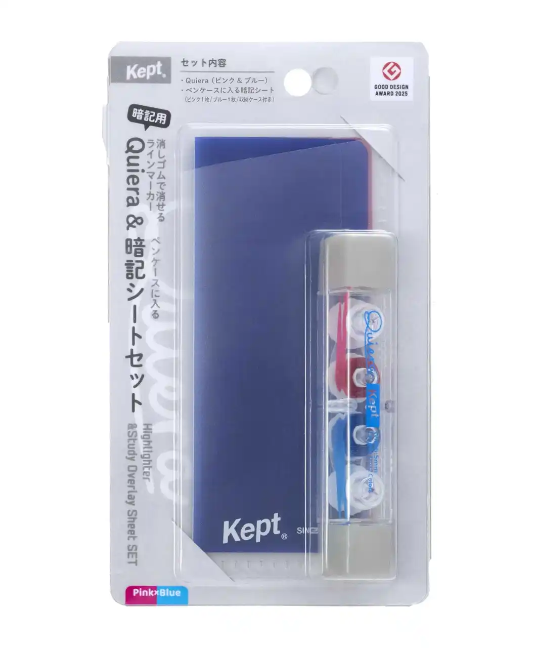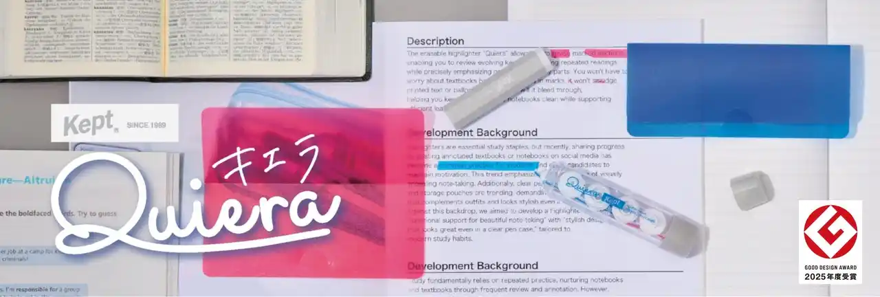「ずっと変わらず好きなもの」をコンセプトに展開するステーショナリーブランド『Kept(ケプト)』より、2025年度グッドデザイン賞を受賞した消しゴムで消せるラインマーカー「Kept Quiera(ケプト キエラ)」の新色「ピンク&ブルー」を発売いたします。 |