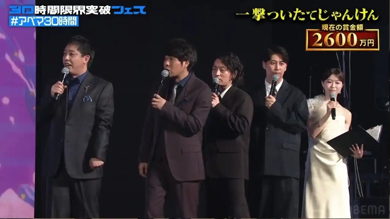 「変えたくない」と両者ともに手を変えずに迎えた運命の判定は、見事コムドットの勝利。賞金獲得が決まった瞬間、コムドットのメンバーは大喜びし、視聴者からも歓喜のコメントが殺到しました。やまとは「めちゃくちゃ怖かったです」「いやホっとしてます」と安堵の表情を浮かべました。最後はMC陣がそれぞれコメントを寄せ、「ABEMAならではの地上波には無いような内容で、刺激的な30時間でした。またやりましょう!」というニューヨーク嶋佐ら言葉で、30時間にわたる感動のグランドフィナーレは幕を閉じました。 |