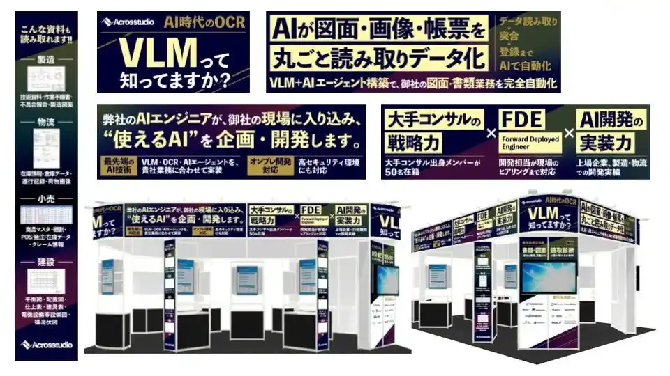 | Acrosstudio株式会社(本社:東京都文京区、代表取締役 保知 一也)は、東京ビックサイトで開催される日本最大級のAI展示会「AI・人工知能EXPO【春】(NexTech Week内)」に出展し、Vision Language Model(VLM)開発と、AIエンジニアが現場で直接課題をディスカッションしながら高速で開発・課題解決を進める、FDE(Forward Deployed Engineer)モデルでの生成AI開発・実装ソリューションを展示いたします。 | |||