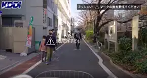 お手持ちのスマートフォンと会場のスクリーンで、歩行中・自転車運転中のながらスマホリスクシミュレーターを体験できます。 |