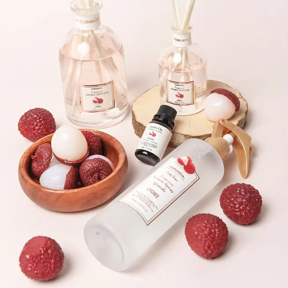 今年のライチコレクションには、新たに「ミニフレグランスセット」と「プレミアムヘアミスト」がラインナップ。 |