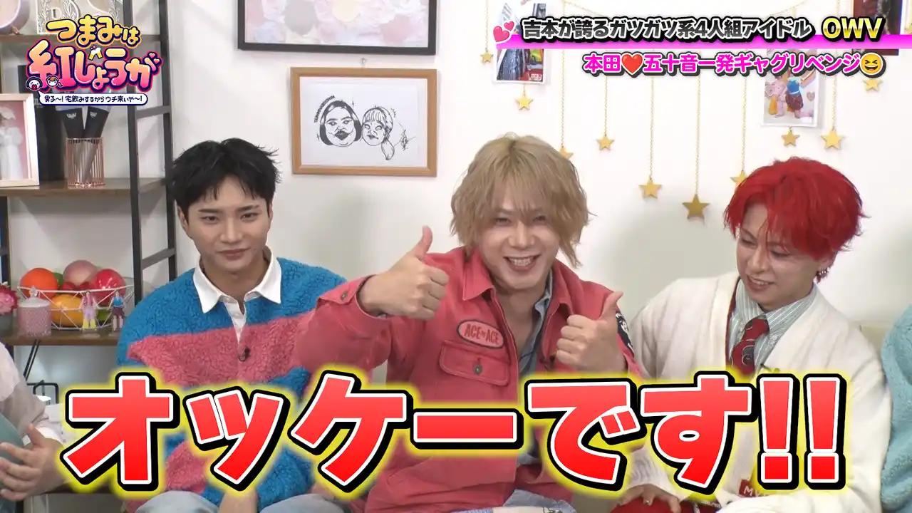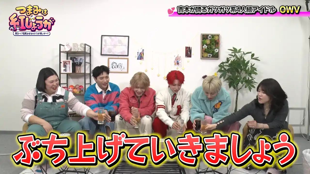 紅しょうがが、“宅飲み”スタイルでステキな男子ゲストと、食べて飲んでトークするBSよしもとの番組『つまみは紅しょうが 男子~!宅飲みするからウチ来ぃや~』(毎月第3・4土曜23:00~)。4月18日(土)の放送回では、これまでに何度か登場しているOWVが、満を持してメンバー4人全員でゲストとして登場します。 |