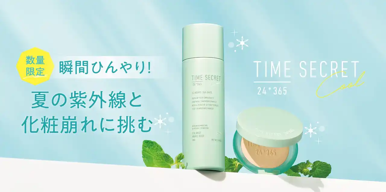msh株式会社が展開するミネラルコスメブランド「タイムシークレット」は、2018年の発売以来、長年多くのみなさまから愛されている、冷感成分*¹を配合したクールシリーズを今年も数量限定で発売します。 |
