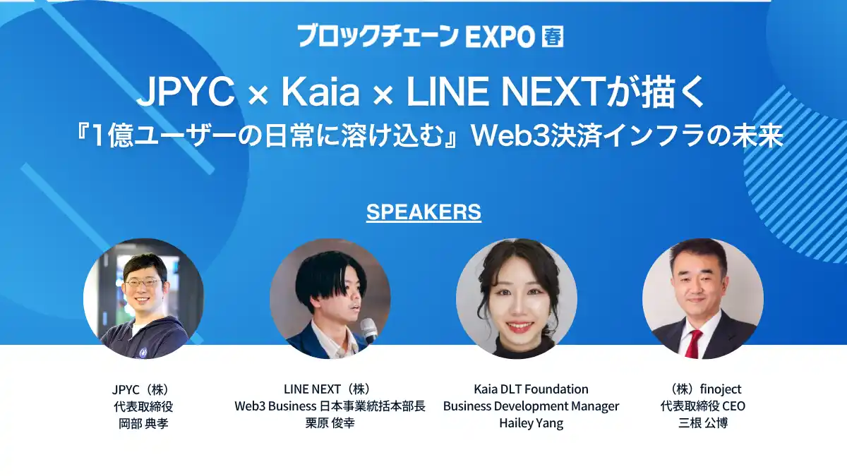 JPYCとLINE NEXTがKaiaブロックチェーンを基盤に、AI決済が日常になる未来や、Web3のマスアダプションをテーマに深く議論します。 |