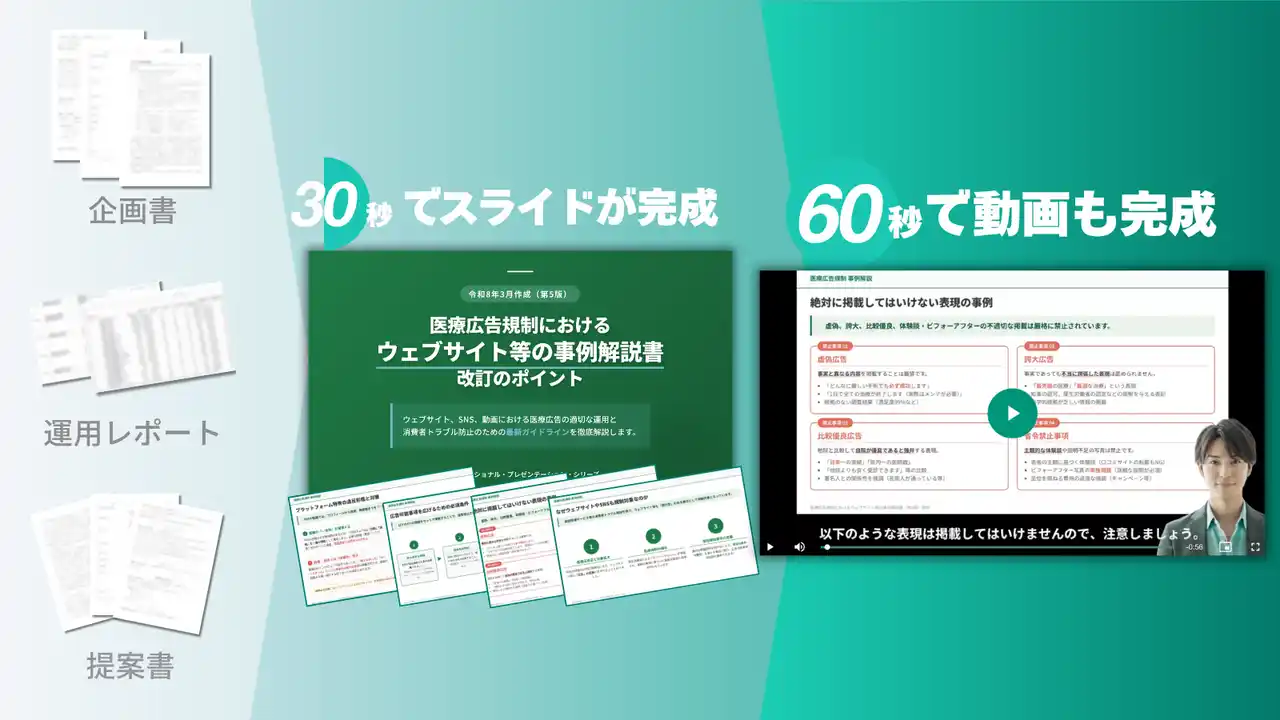 ■既存資料からスライドと動画を一気通貫生成。広告業界向けに新搭載 |