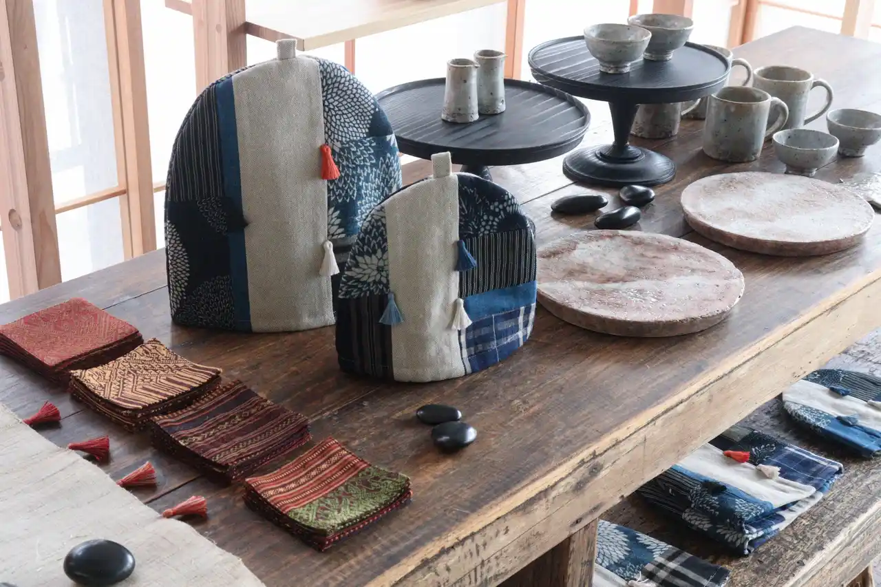 本店舗では、風通しが良く、洗うたびにふんわりと柔らかさを増す蚊帳の服や、凛とした麻のアイテムが並びます。年齢や性別を問わず心地よく身にまとえるユニセックスなアイテム、海外のお客様にも楽しんでいただけるゆったりとしたサイズもご用意しました。また、東大寺店限定のアイテムも展開いたします 。喫茶去 華羅で使用している器の多くは、作家の方々に依頼してオリジナルで制作していただいたもので、その一部はショップでもお買い求めいただけます。 |