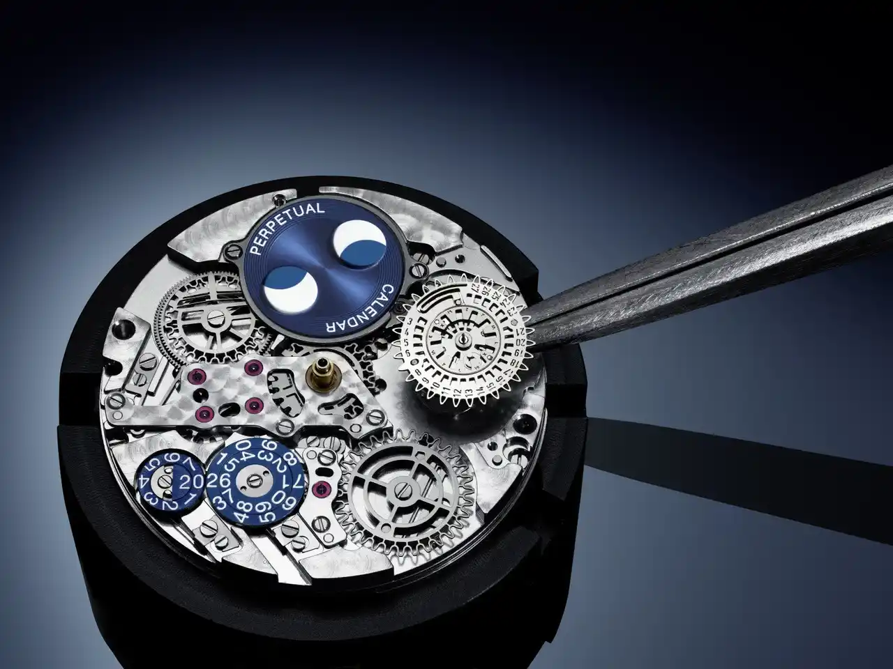 カレンダーを前後に調整する機能 クルト・クラウスのオリジナル機構と同様、パーペチュア ル・カレンダー・プロセットは、月の長さの変化を自動的に計算し、4年ごとに閏日を追加します。文字盤はおなじみの外観を維持しながら、内部の機構が改良されています。前後の調整機能を念頭に置き、基礎から設計されたパーペチュアル・カレンダー・プロセットは、複数の機