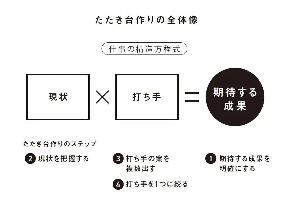 仕事の構造は「現状×打ち手=期待する成果」という方程式で表せます 。