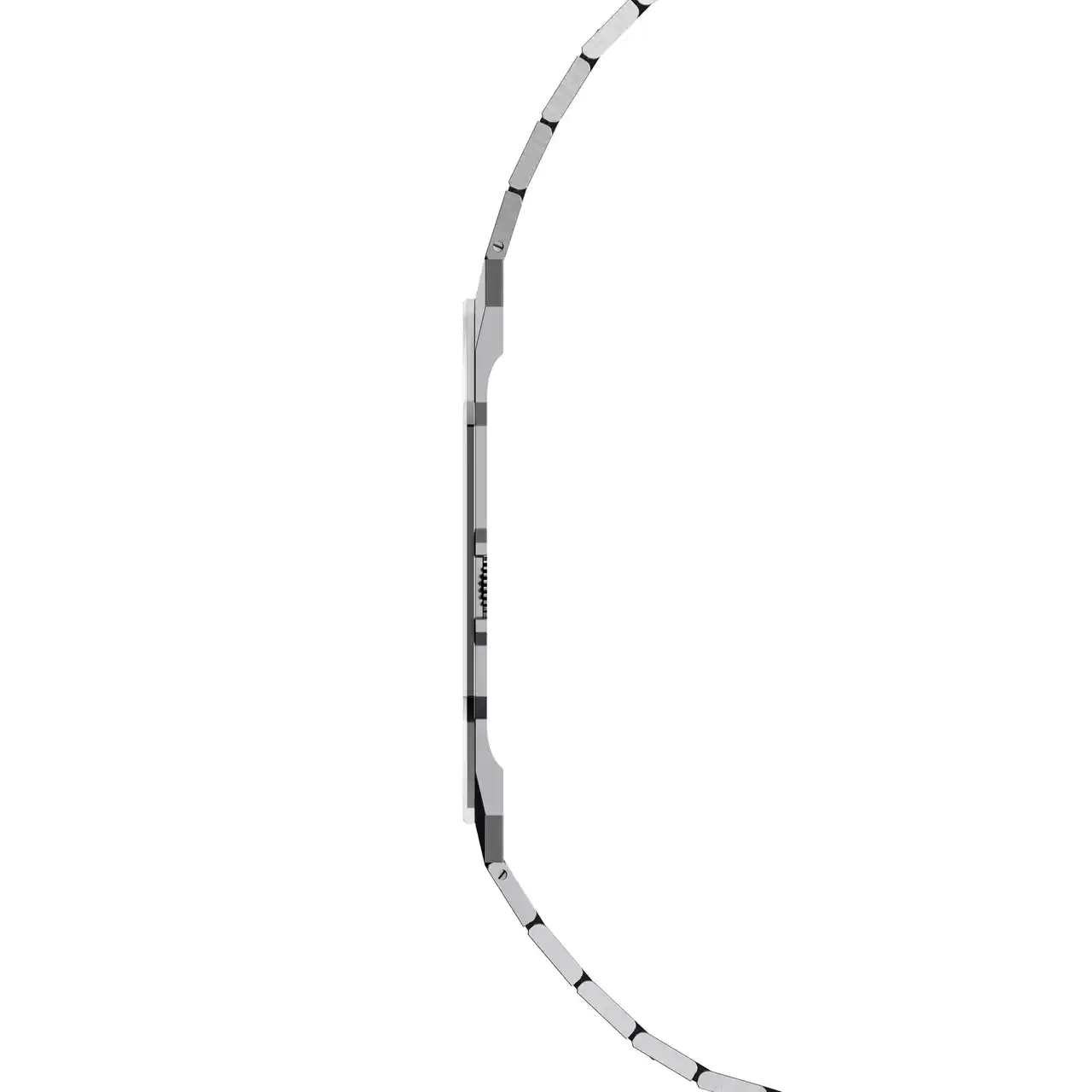 プラチナ」が、10本のみの限定生産で発売されます。 わずか1.85mmという驚異的な薄さは、ウォッチデザインにおける進化の賜物です。ケースとブレスレットの両方に用いられたプラチナ素材が、よりエクスクルーシブな存在感を放ちます。 印象的なブルーのアクセントと、サテンブラッシュ仕上げとポリッシュ仕上げを組み合わせたブレスレットが特徴的なこのモデルは、世界最薄のフライングトゥールビヨンの称号を誇ります。 |