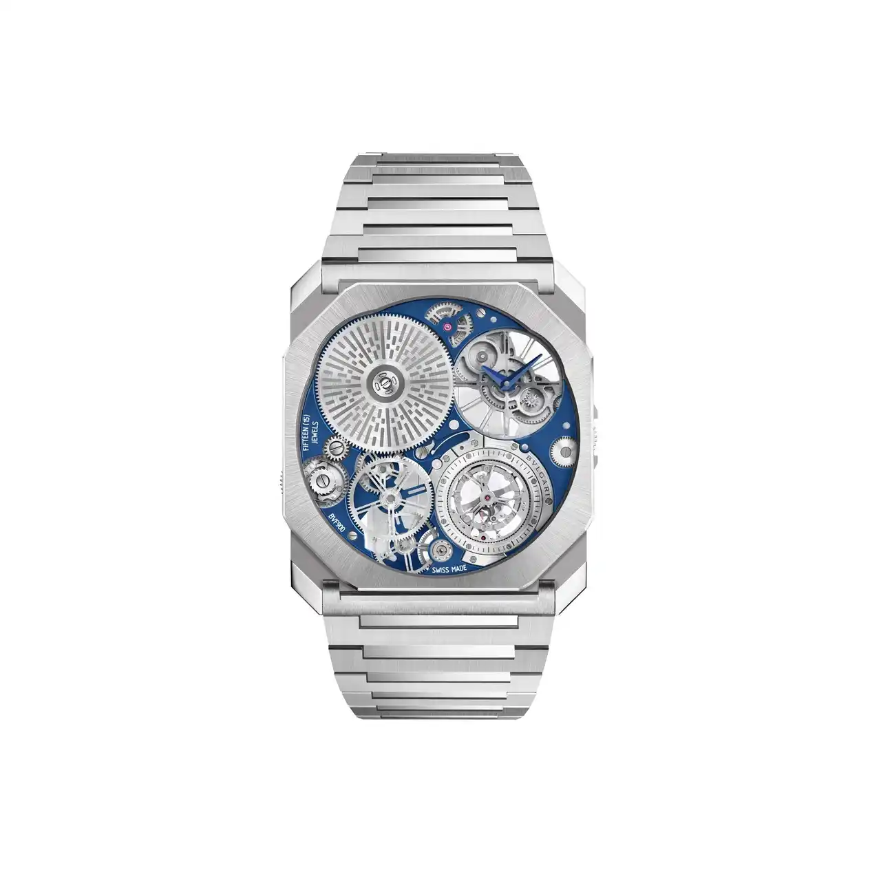 | これまでに発表されたそれぞれの「オクト フィニッシモ ウルトラ」は、ブルガリの超薄型エンジニアリングの継続的な探求をさらに発展させてきました。「オクト フィニッシモ ウルトラ」は、超薄型というオクトのシリーズ中でも独自のポジションにありながらも、「オクト フィニッシモ」のデザイン言語とクリエイション哲学に忠実なタイムピースです。その特徴を際立たせる機能性と耐久性に優れた設計は、高度な機械的構造と、ラグジュアリーウォッチの中でも完璧といえる着用感を実現しています。 | |||