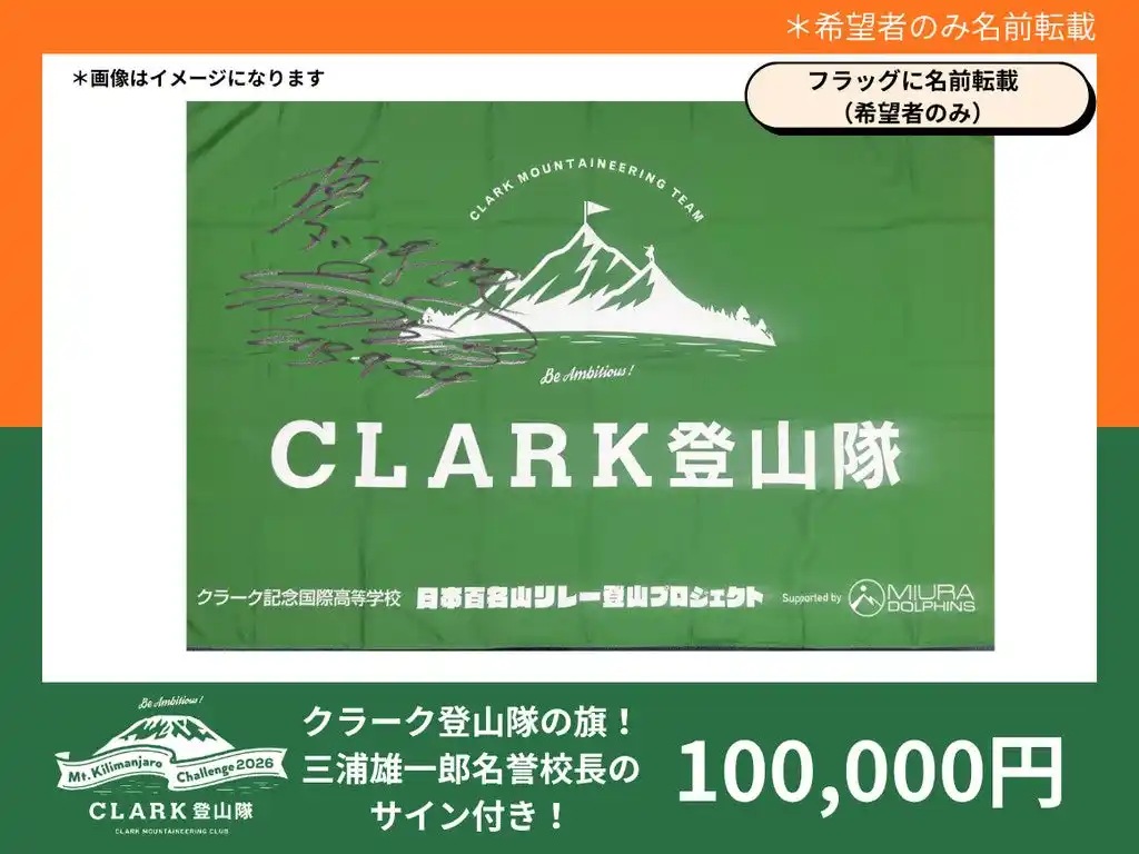 三浦雄一郎名誉校長のサイン付き! クラーク登山隊の旗 |