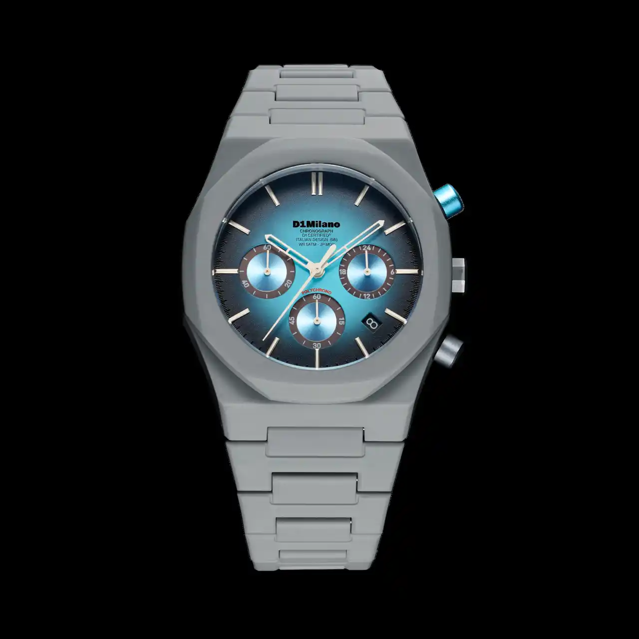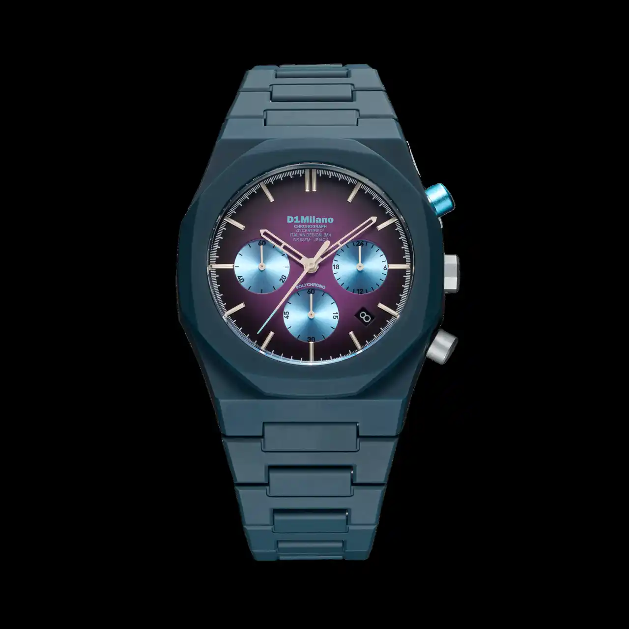 POLYCHRONOは、D1 Milanoの特徴であるミニマルデザインをベースに、クロノグラフ機能を搭載したスポーティなモデルです。ダイヤルにはクロノグラフ特有のサブダイヤルを配置しながらも、ブランドらしいクリーンなデザインバランスを保ち、ファッションウォッチとしての洗練された印象に仕上げています。スポーティでありながら日常のスタイリングにも取り入れやすく、カジュアルからストリートスタイルまで幅広いコーディネートに対応するモデルです。 |