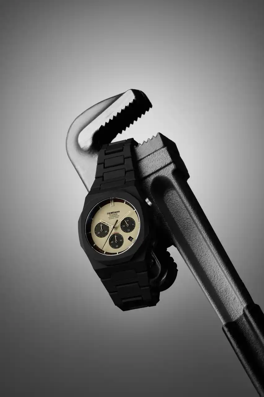 本モデルは、2026年春夏コレクションとして展開してきた“5週連続リリース企画”の最終モデルとなります。3月20日からスタートした本企画では、ミニマルウォッチからカラーウォッチ、小径モデル、スポーツデザインモデルまで、D1 Milanoの多様なデザインアプローチを5週にわたり紹介してきました。その締めくくりとして登場するのが、機能性とデザイン性を兼ね備えたクロノグラフモデルPOLYCHRONOです。 |