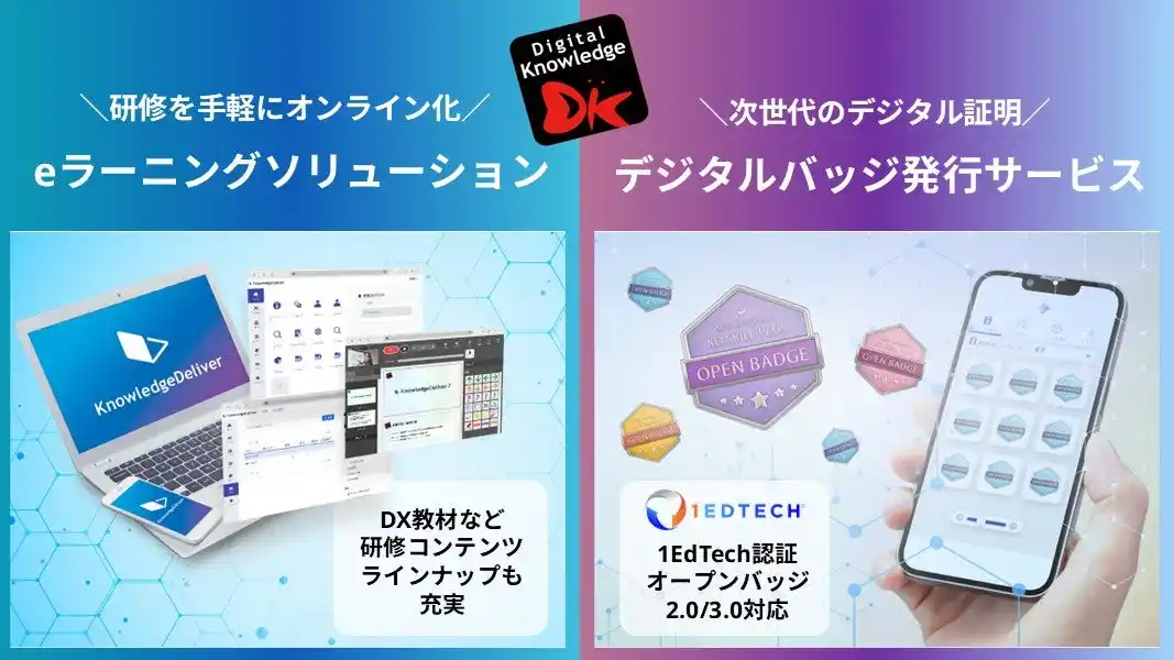 DX研修をはじめ、研修コンテンツも豊富!「デジタルバッジ発行サービス」もご案内いたします。 |