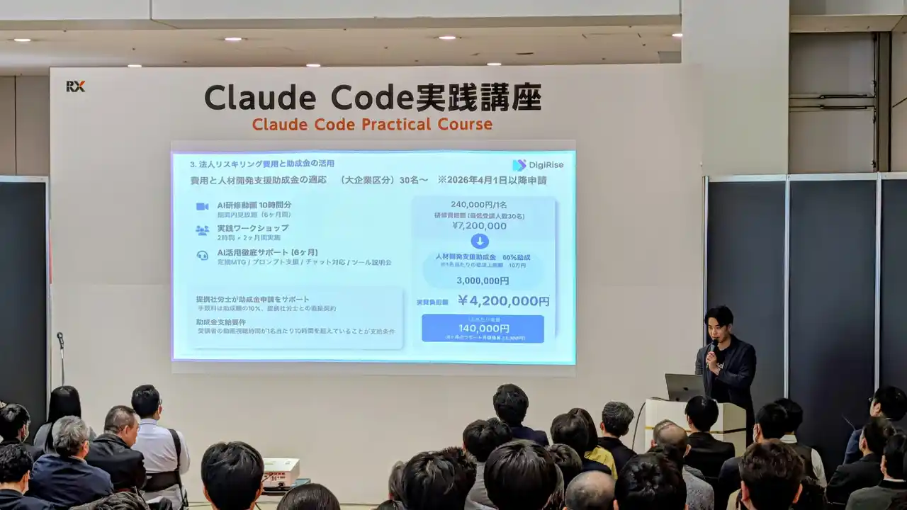 | 株式会社デジライズ(本社:東京都港区、代表取締役:茶圓将裕)は、4月8日(火)~4月10日(金)の3日間にわたり開催された「Japan IT Week 春 2026」において、「Claude Code実践講座」の講師を代表取締役・茶圓将裕が2日間にわたり担当いたしました。連日立見席が出るほどの反響をいただき、この熱量に応える形で4月22日(水)に見逃しオンラインセミナー「徹底比較 Claudeの優位性と2026年最新AI実装戦略」を開催することを決定いたしました。 | |||||||||