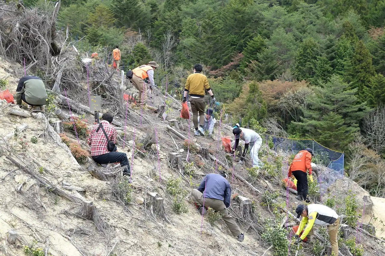2022年11月には、林野庁の「法人の森林」制度を活用し、地域の里山林に生育する在来種の苗木を植栽し森を育てる「エスペック50年の森」づくりを開始しました。兵庫県立大学と連携し、用材生産と環境保全の両立を図るとともに調査・研究フィールドとして活用しています。 |
