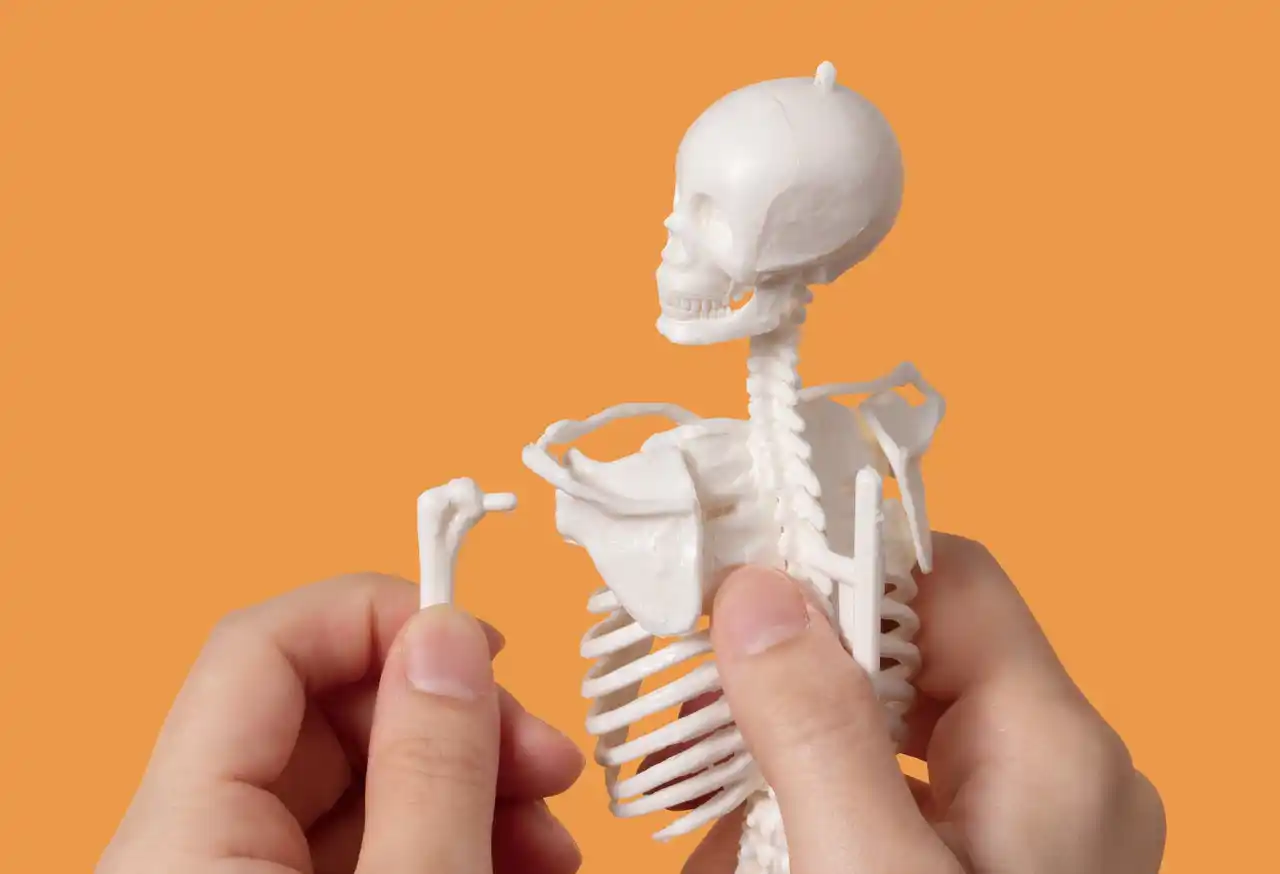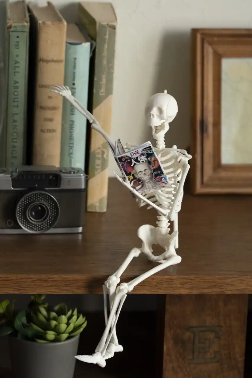 肩、ひじ、ひざなどの関節を動かして、ポーズをとらせることができます。自分も同じポーズに挑戦することで、骨の動きが実感できます。座らせて飾ってもかわいいです。 |