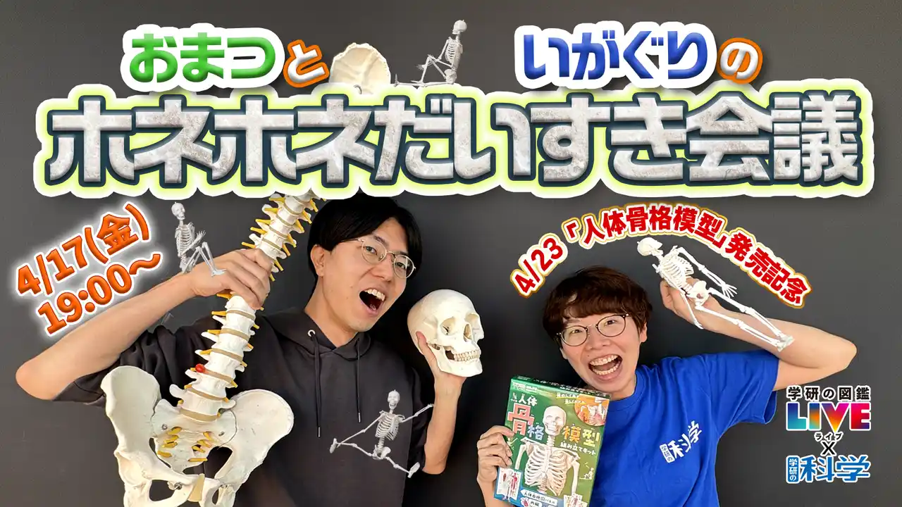 発売を記念して、学研の科学編集部より骨の魅力をたっぷり伝えるライブ配信を開催! 4月17日(金)19時からYouTubeにて公開予定。アーカイブ配信あり。