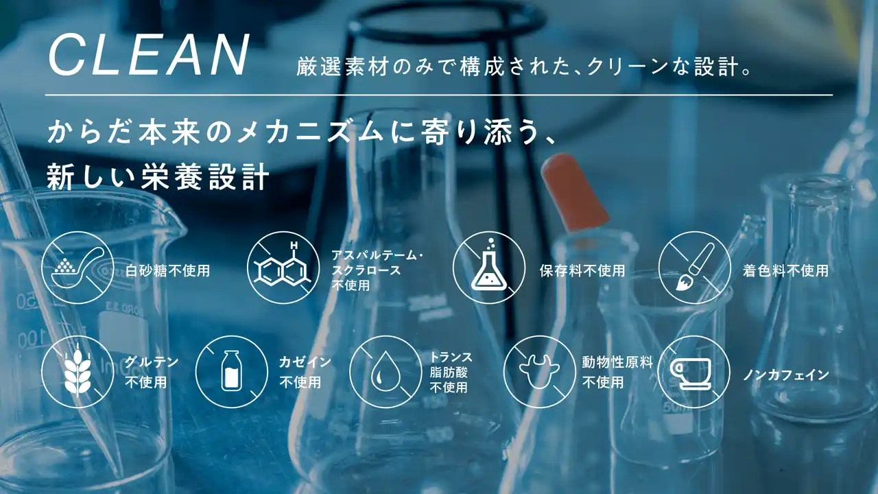 身体と日々のパフォーマンスを第一に考えた理想的な商品設計のため、植物性食品のみを用い、白砂糖・小麦・乳製品・保存料を一切使わず、植物性由来の甘みのみでさらに糖質5g以下という厳しい条件のもと開発を進めました。 |