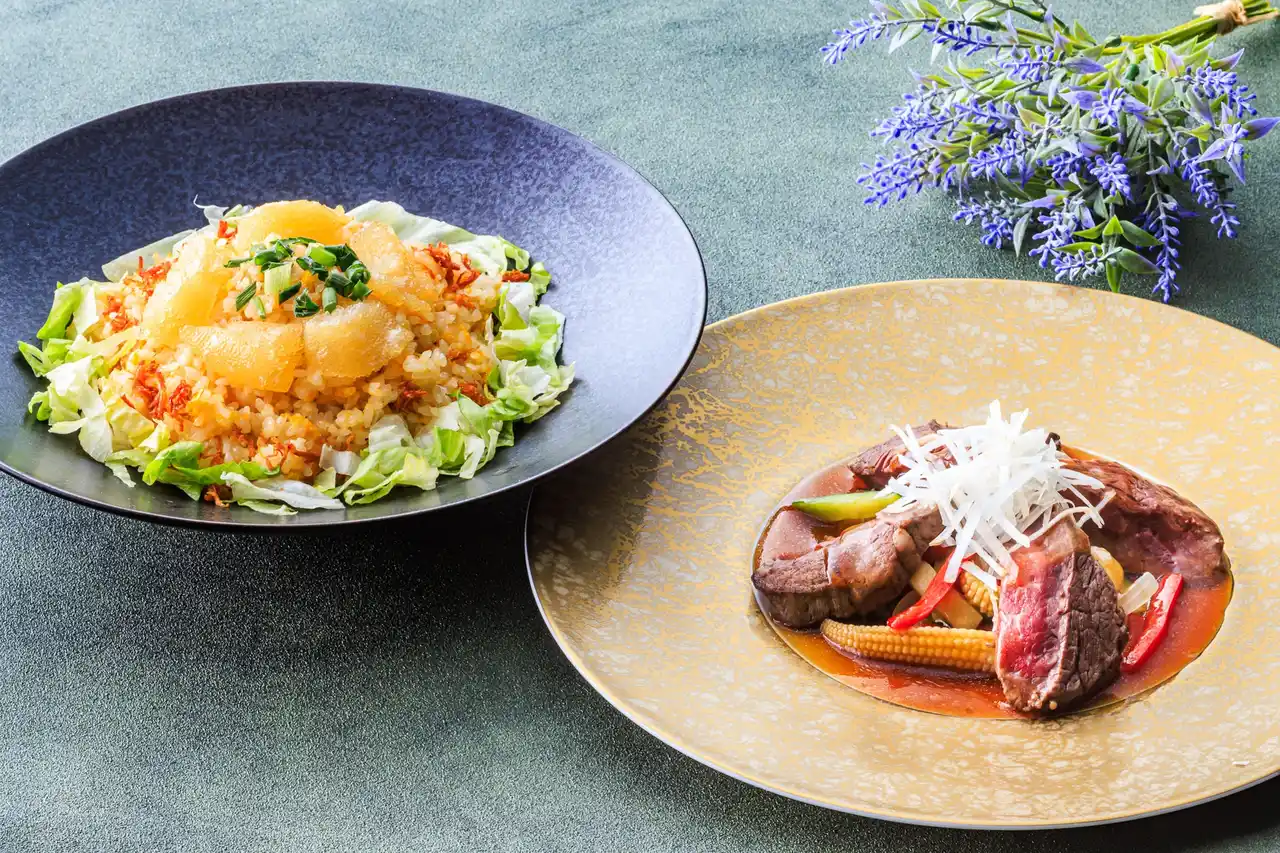 “鳳凰コース”の魅力を象徴する一皿を、ア・ラ・カルトでもご用意いたします。「北海道産牛肉のハチミツソース」「数の子と干し貝柱入りチャーハン」、コースの味わいを気軽にお楽しみいただけます。ご家族やご友人とシェアしながら、自由なスタイルでお楽しみください。 |