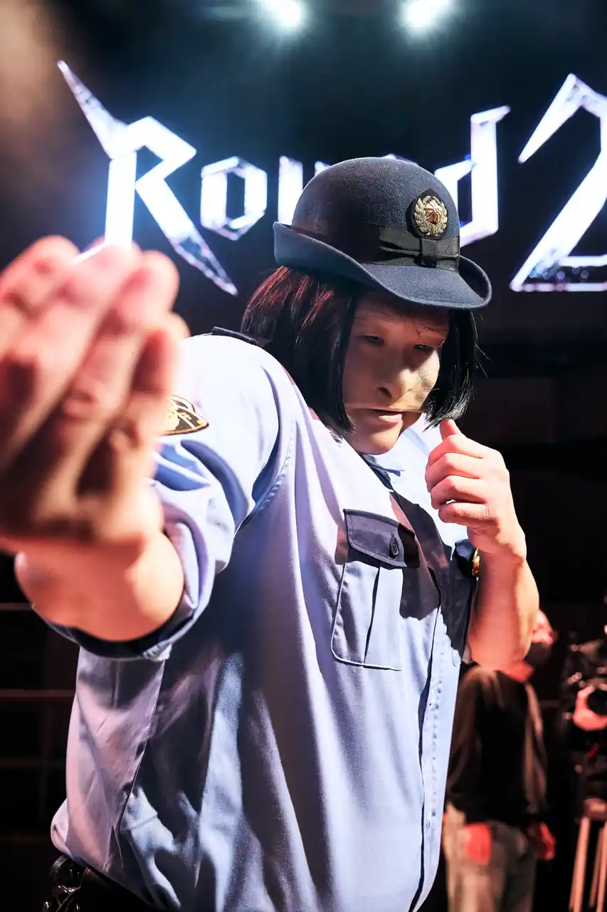 圧倒的な暴力によって事件を解決に導く、巨躯の女性警官"ティラノ"こと寺野役を阿見201(『キングダム』ランカイ役 など)が怪演。 |