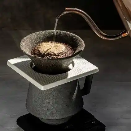 「39Arita」セラフィルター2点セット四角 6,500円、マグカップ 5,000円 400年以上の歴史を持つ有田焼の技術を活かし、繰り返し使えるセラミック製コーヒーフィルターを開発。微細孔構造により豆本来の風味を引き出します。ブランド「39Arita」は有田の自社工場で職人が一つひとつ手作りしています。 |