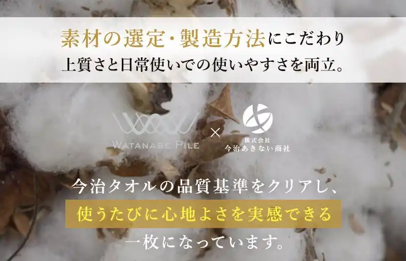 上質な綿と丁寧に織り上げる伝統的な製法にこだわる、渡辺パイル織物(株)だからこそ実現できたクオリティとふるさと納税返礼品として手に取りやすい価格設計。 |