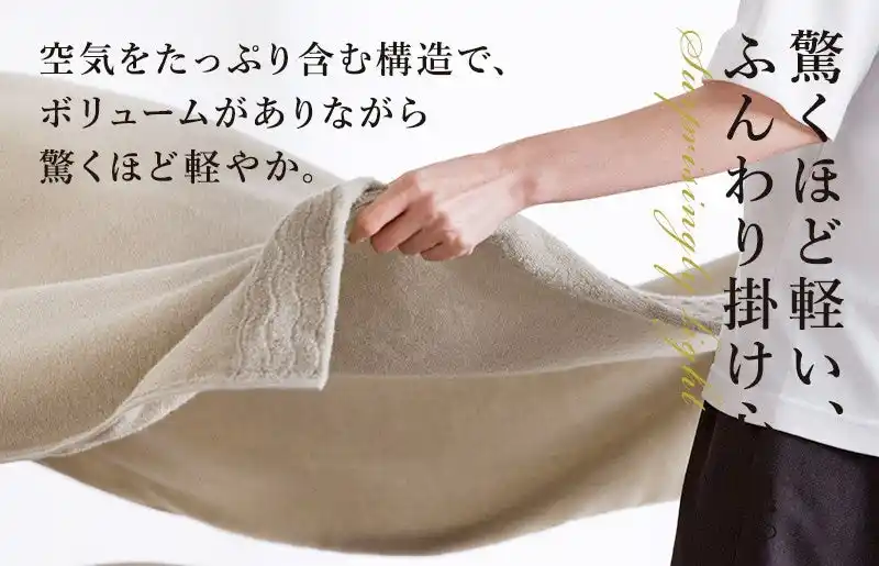 これにより、「ふんわりとしたやわらかさ」「軽やかな掛け心地」「上質な肌触り」を実現しました。 |