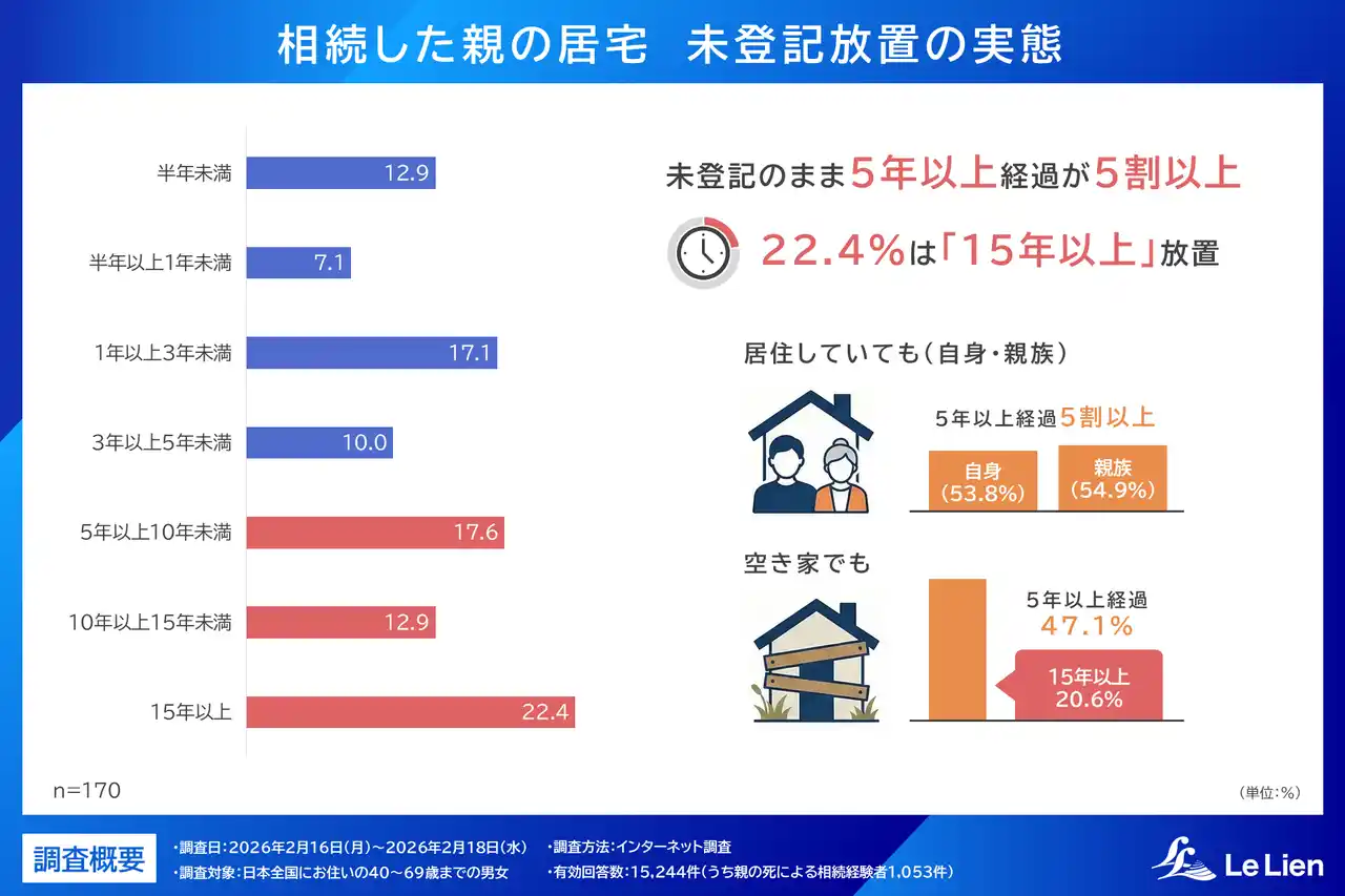 【2】相続した親の居宅の16.1%が未登記、その半数以上が「5年以上」放置状態に |