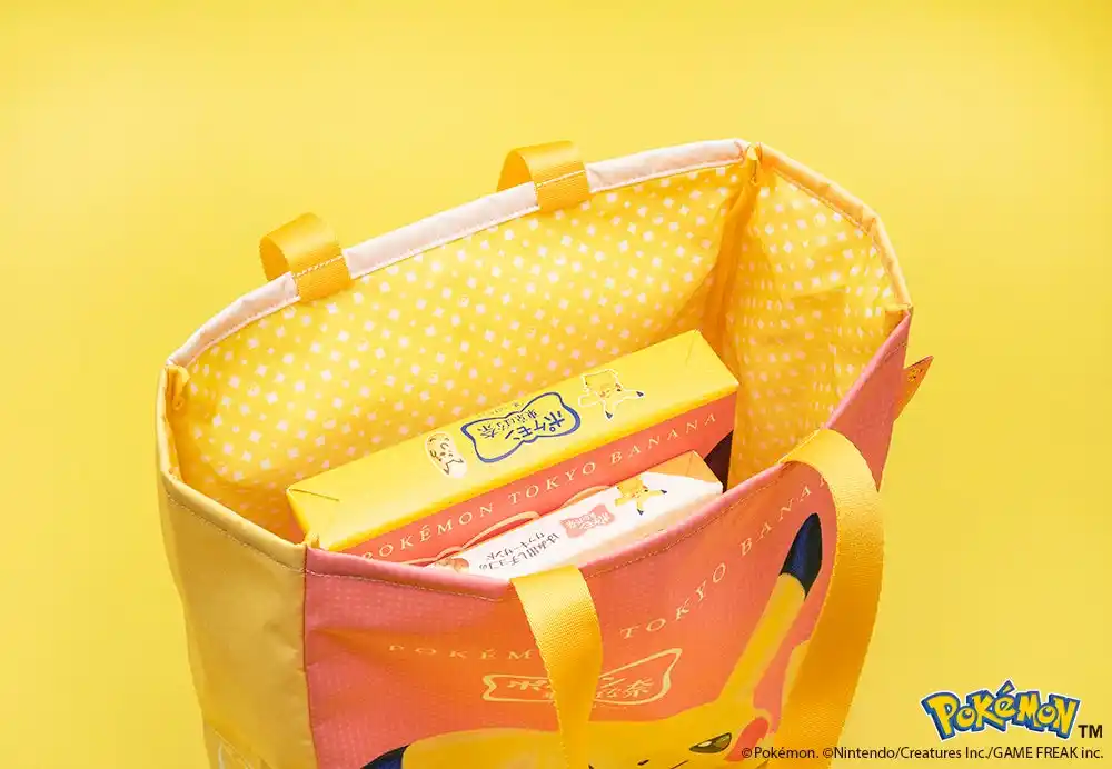 | 再販が決定したピカチュウバッグセットのトートバッグは、「ピカチュウ東京ばな奈」のパッケージを思い起こすデザイン。大容量で持ち手も長めなので、お買い物にも大活躍すること間違いなしです!中は黄色の生地に、さりげなくモンスターボールの模様が入っています。「ピカチュウ東京ばな奈 8個入」と「はみ出しチョコのクッキーサンド 12枚入」が1つずつ入ったセットなので、お土産にもおすすめですよ。 | |||||||||||||||