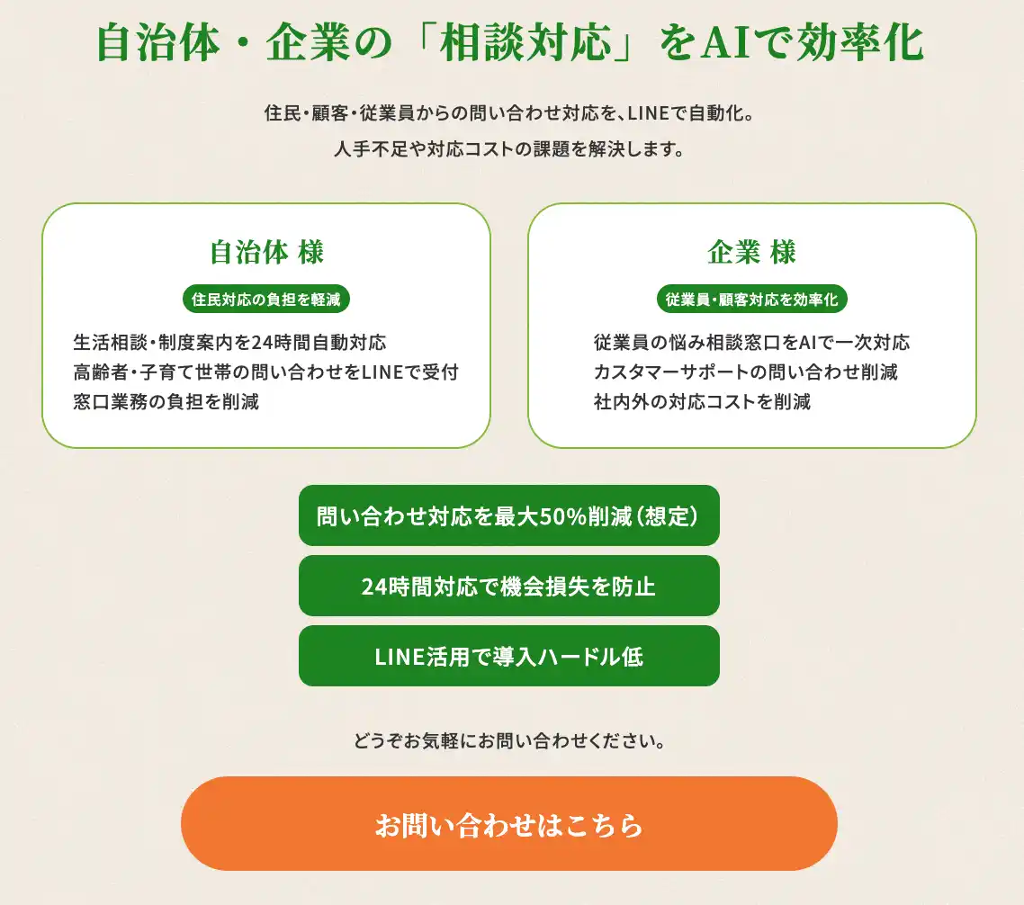 | ~24時間365日、誰でも無料で相談できる 生活相談AIをリリース~ |