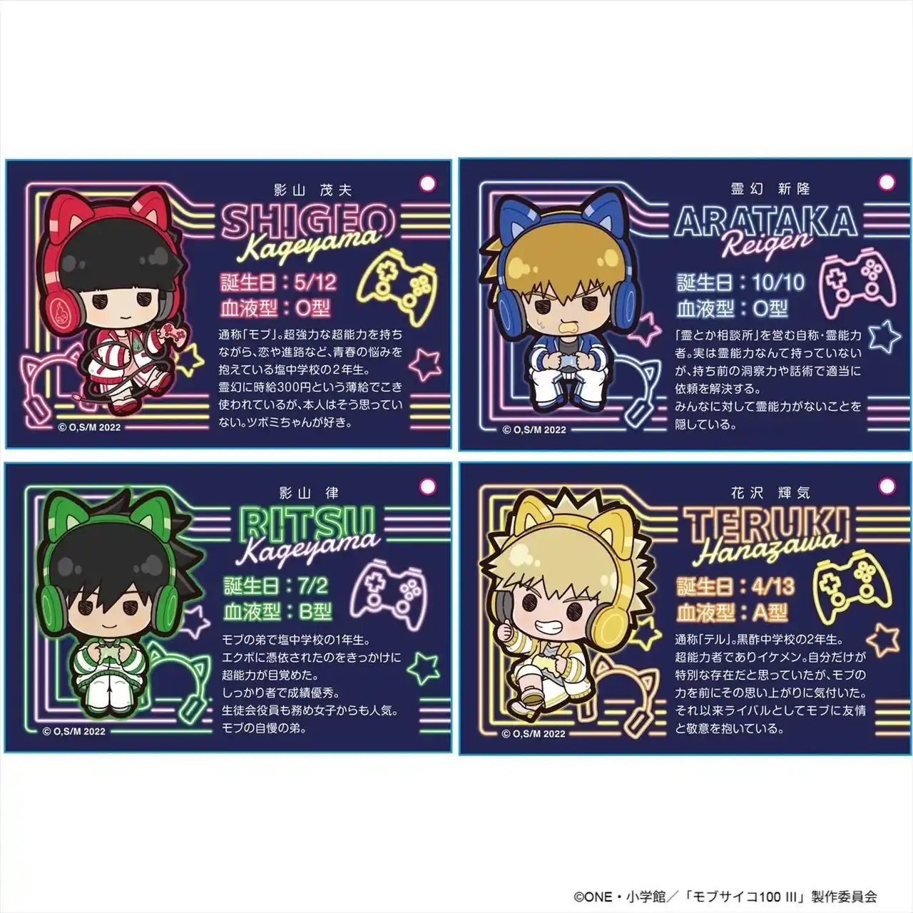 【サイズ】86mm×54mm 【素 材】マットコート紙258kg (C)ONE・小学館/「モブサイコ100 III」製作委員会 |