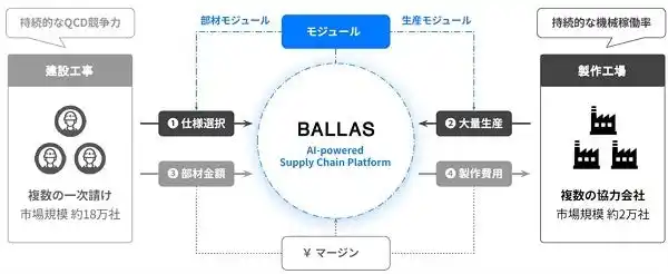 大和ハウスグループの大和ハウスベンチャーズ株式会社(本社:東京都千代田区、社長:鈴木哲雄、以下「大和ハウスベンチャーズ」)は、2026年1月9日、大和ハウスグループ共創共生1号投資事業有限責任組合(※1) (以下「シナジーファンド」)を通じて、建設部材の設計・調達プラットフォームを運営する株式会社BALLAS(バラス)(本社:東京都中央区、代表:木村将之、以下「BALLAS」)へ出資しました。 |