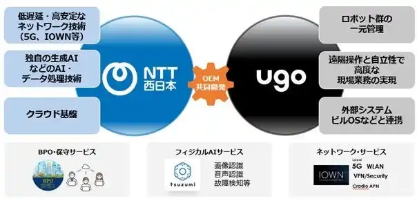 NTT西日本株式会社(本社:大阪府大阪市都島区、代表取締役社長:北村 亮太、以下、NTT西日本)は、様々な産業における労働力不足をはじめとする社会課題の解決を見据え、ugo(ユーゴー)株式会社(本社:東京都千代田区、代表取締役CEO:松井 健、以下、ugo)※1への出資に関する契約を締結し、マルチロボティクスプラットフォーム ※2の展開をさらに加速させ、人とロボットが協働できる社会の実現をめざしていきます。 |