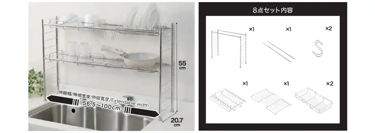 ニトリの「伸縮シンク上ラック8点セット」で、シンクまわりを整えてみませんか? |