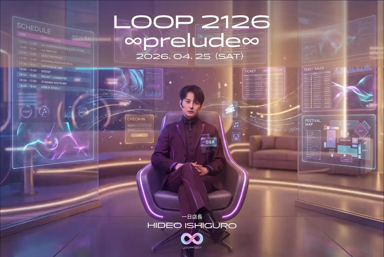 2026年4月25日(土)に新宿・歌舞伎町で初開催する体験型サイエンスフィクション・フェス「LOOP 2126 ∞prelude∞(https://www.loop8fest.com)」は、俳優・石黒英雄さんを1日店長に迎え、来場者と直接交流できるスペシャルイベントを開催いたします。本プログラムは入場無料でどなたでもご参加いただけます。 |