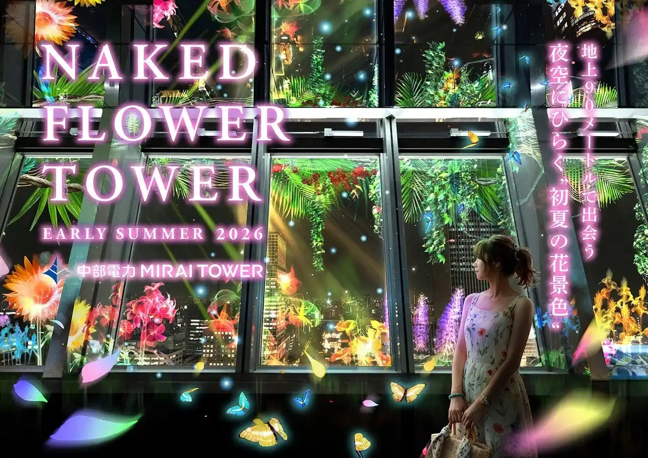 株式会社ネイキッド(英語表記:NAKED, INC. 、所在地:東京都渋谷区、代表:村松亮太郎)は、名古屋テレビ塔株式会社(所在地:愛知県名古屋市)が運営する「中部電力 MIRAI TOWER」の90m屋内展望台「スカイデッキ」にて、2026年5月1日(金)~2026年6月30日(火)の期間に開催されるプロジェクションマッピングショー「NAKED FLOWER TOWER EARLY SUMMER 2026」の企画・演出・制作を手がけています。 |