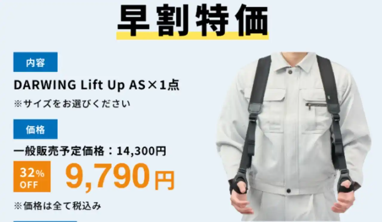 (本社:東京都中央区 代表取締役社長:新村達也)と共同開発した掘削作業用アシストスーツを大幅にリニューアルし、新製品「DARWING Lift Up AS(ダーウィン リフト アップ エーエス)」として、2026年4月2日(木)よりアタラシイものや体験の応援購入サービス「Makuake」にて先行販売を開始いたしました。