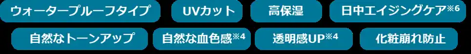 ※1 乾燥による ※2 製品のベースを構成する要素のひとつ ※3 保湿成分 ※4 メーキャップ効果 ※5 ジメチコン(基剤)、酸化チタン(着色剤)、マイカ、アルミナ、酸化スズ(すべて滑沢剤) ※6 年齢に応じたお手入れ ※7 精製水含む ※8 保湿による明るい印象を与えること ※9 パルミチン酸アスコルビルリン酸3Na、マンダリンオレンジ果皮エキス、セイヨウネズ果実エキス(すべて保湿成分) ※10 角質層まで ※11 加水分解コラーゲン(保湿成分) ※12 サクシノイルアテロコラーゲン