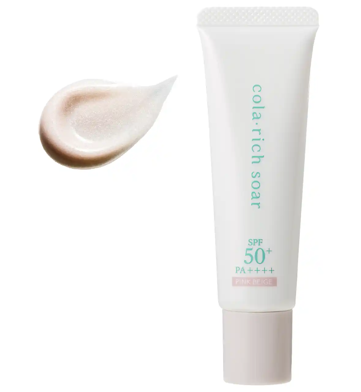 キューサイ株式会社(本社:福岡市中央区、代表取締役社長:石川 順朗)は、「24時間 土台構築(※2)コラーゲン(※3)」を掲げるスキンケアシリーズ「cola・rich soar(コラリッチ ソア)」より、UV下地「コラリッチ ソア ブライトニングUVベース」を2026年4月15日(水)に発売いたします。本商品は、40~50代の大人世代特有のくすみ(※1)悩みに着目し、日中ケアと下地機能のWアプローチで、光を味方につけて透明感(※4)あふれる垢抜け美肌へ導くUV下地です。「SPF50+/PA++++」の高い紫外線カット機能で春夏の強い日差しから肌を守りながら、3種の微細パール(※5)を含むピンクベージュの下地が大人世代の黄ぐすみ(※1)をカバーし自然な血色感(※4)と透明感を演出、上品なつや肌を叶えます。 |