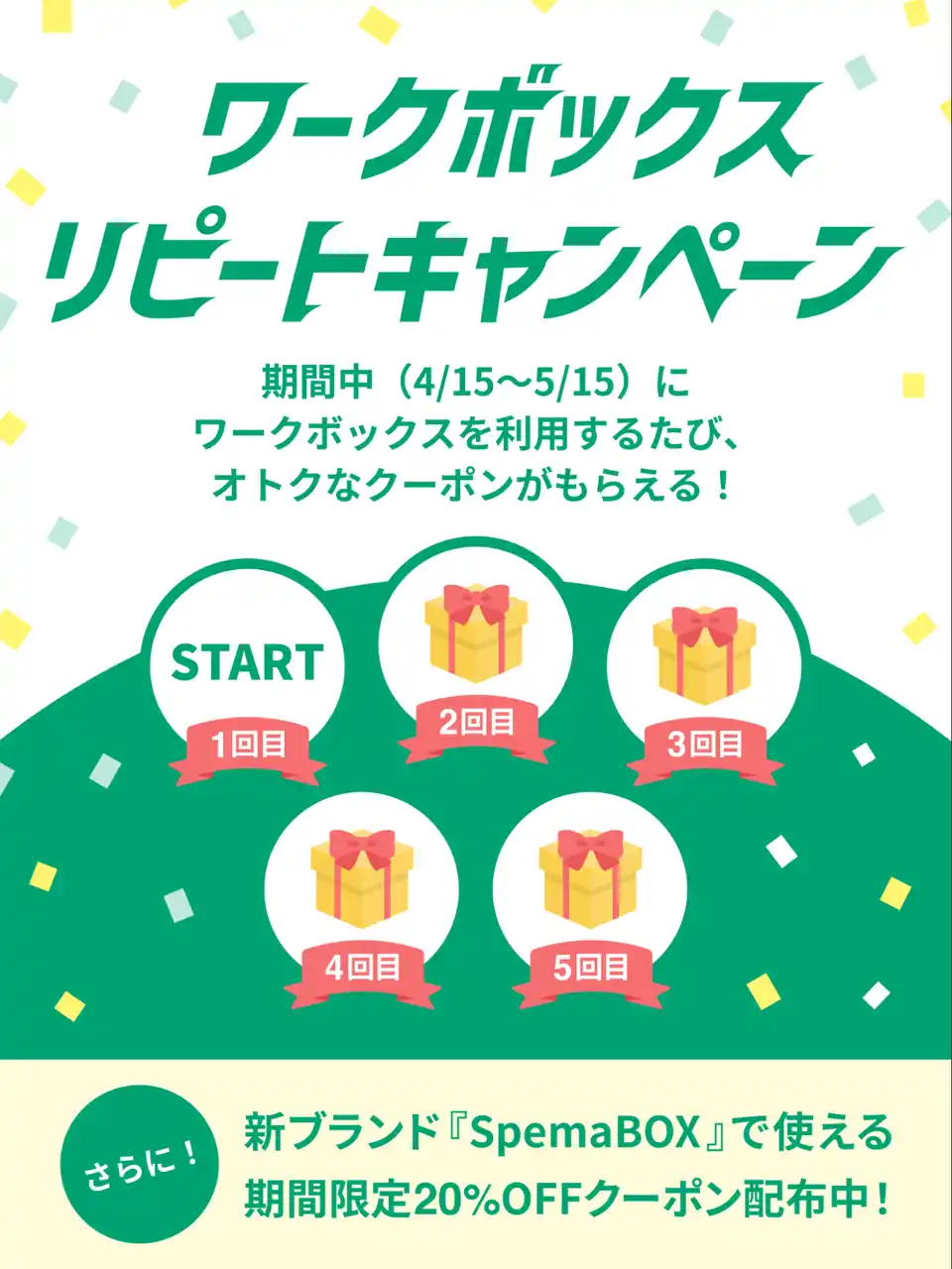 「SpemaBOX」の利用で使える20%オフクーポンを期間限定で配布いたします。 |