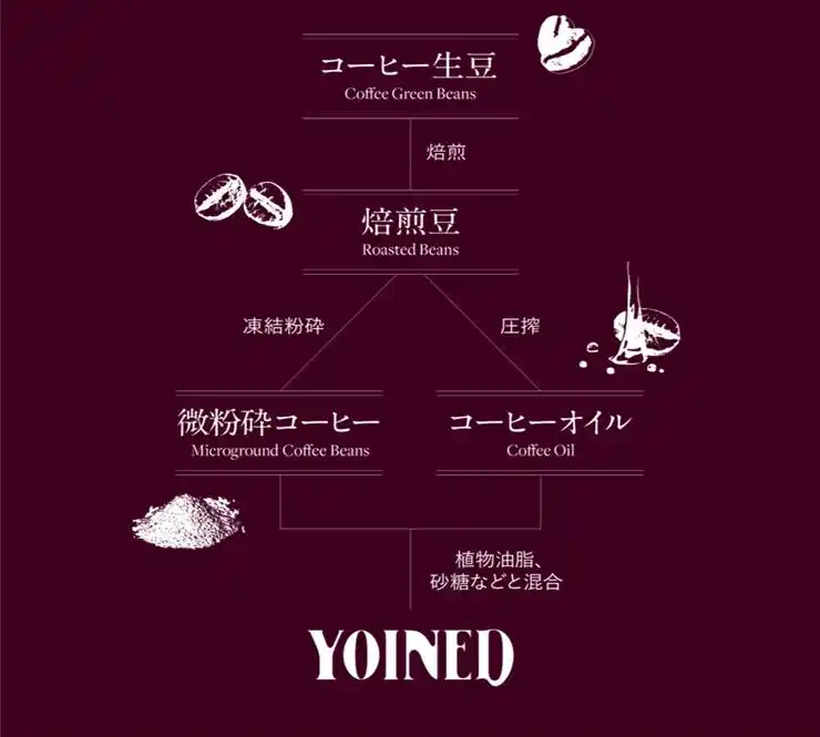 『YOINED』は、構想から20年以上かけUCCが2023年11月に発売した、日本初※1の独自製法で生み出した食べるスタイルのコーヒーです。UCCグループは「より良い世界のために、コーヒーの力を解き放つ。」をパーパスに掲げ、コーヒーの可能性に挑戦しています。『YOINED』の原点には、「コーヒー豆の魅力、香りを余すことなく堪能したい・・・」という研究者たちの思いがあり、“究極のコーヒーの香り”を追求した結果です。 |