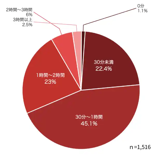 荷待ちについて、最多は「30分~1時間(45.1%)」で、次が「1時間~2時間(23.0%)」でした。一方で「2~3時間(6.0%)」、「3時間以上(2.5%)」と、現場によっては依然として深刻な荷待ちが残っていることも浮き彫りになりました。 |