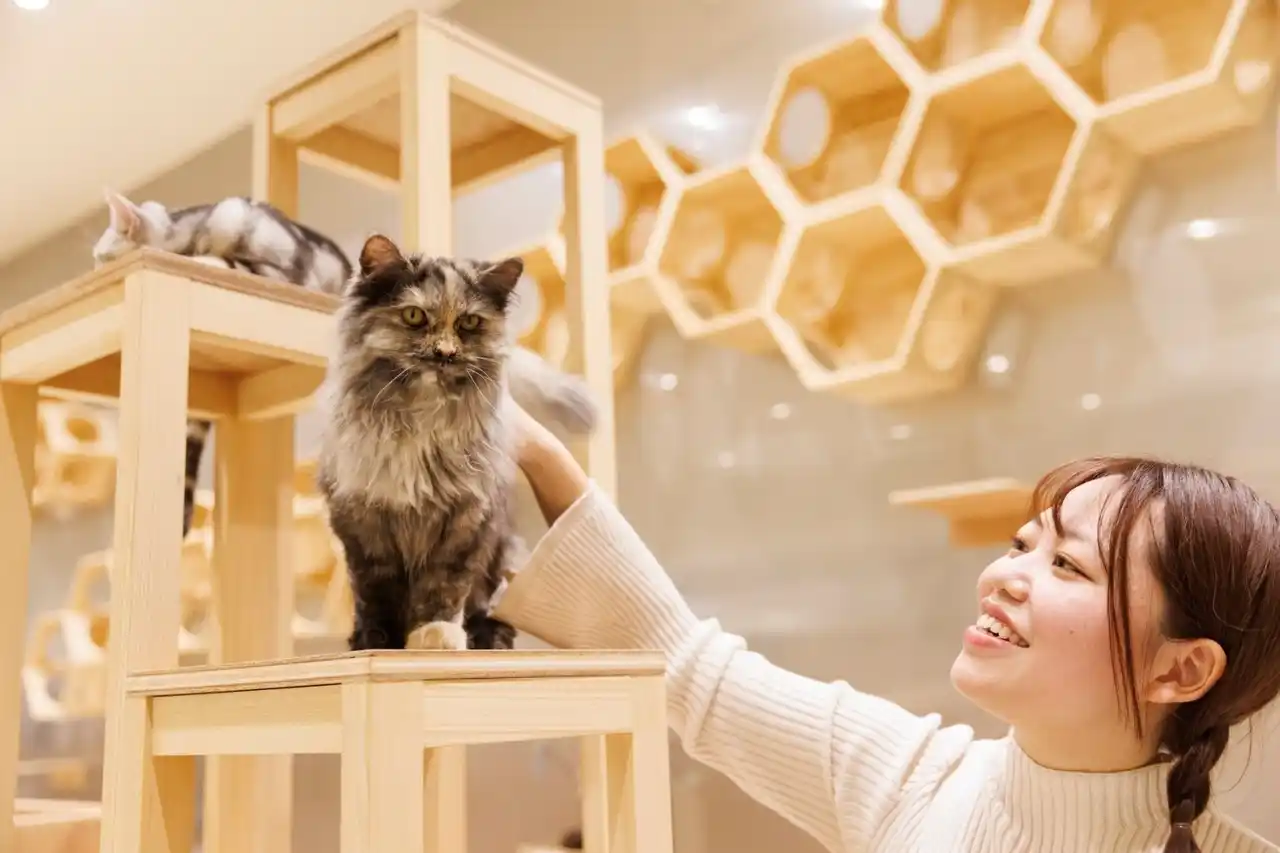 既存店では、“どうふつとのふれあいデビュー”としてご来園された小さなお客様が、最初は少し緊張して親御さまの後ろに隠れてしまう光景も少なくありません。しかし、スタッフのサポートのもとで猫たちが穏やかに過ごす様子を見ているうちに、次第に自分からそっと手を伸ばせるようになります。 沖縄国際通り店でも、そんな「命のぬくもりにふれた時の輝くような笑顔」に出会えるシーンを大切にし、どうぶつと人間が笑顔で幸せに共存できる社会を目指してまいります。 |