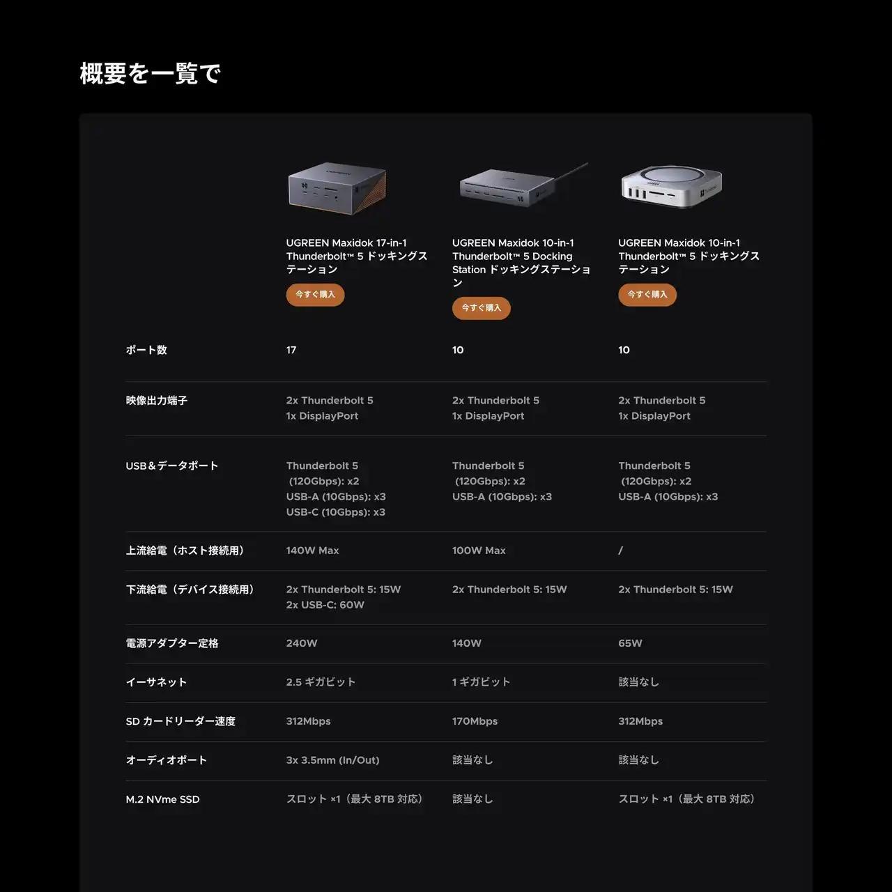 UGREEN Maxidok 17-in-1 Thunderbolt(TM)5 ドッキングステーション(プレミアムモデル) |