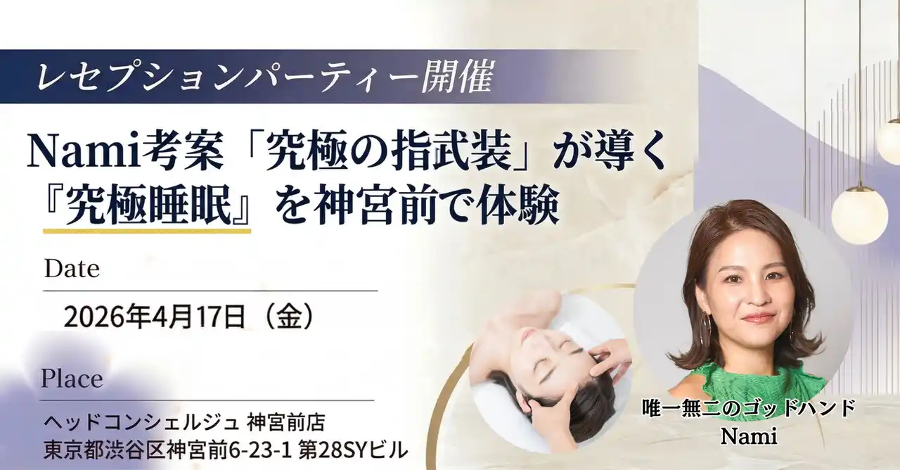 | ヘッドコンシェルジュ名物「指武装」が導く『究極睡眠ヘッドスパ』を神宮前で体験 |
