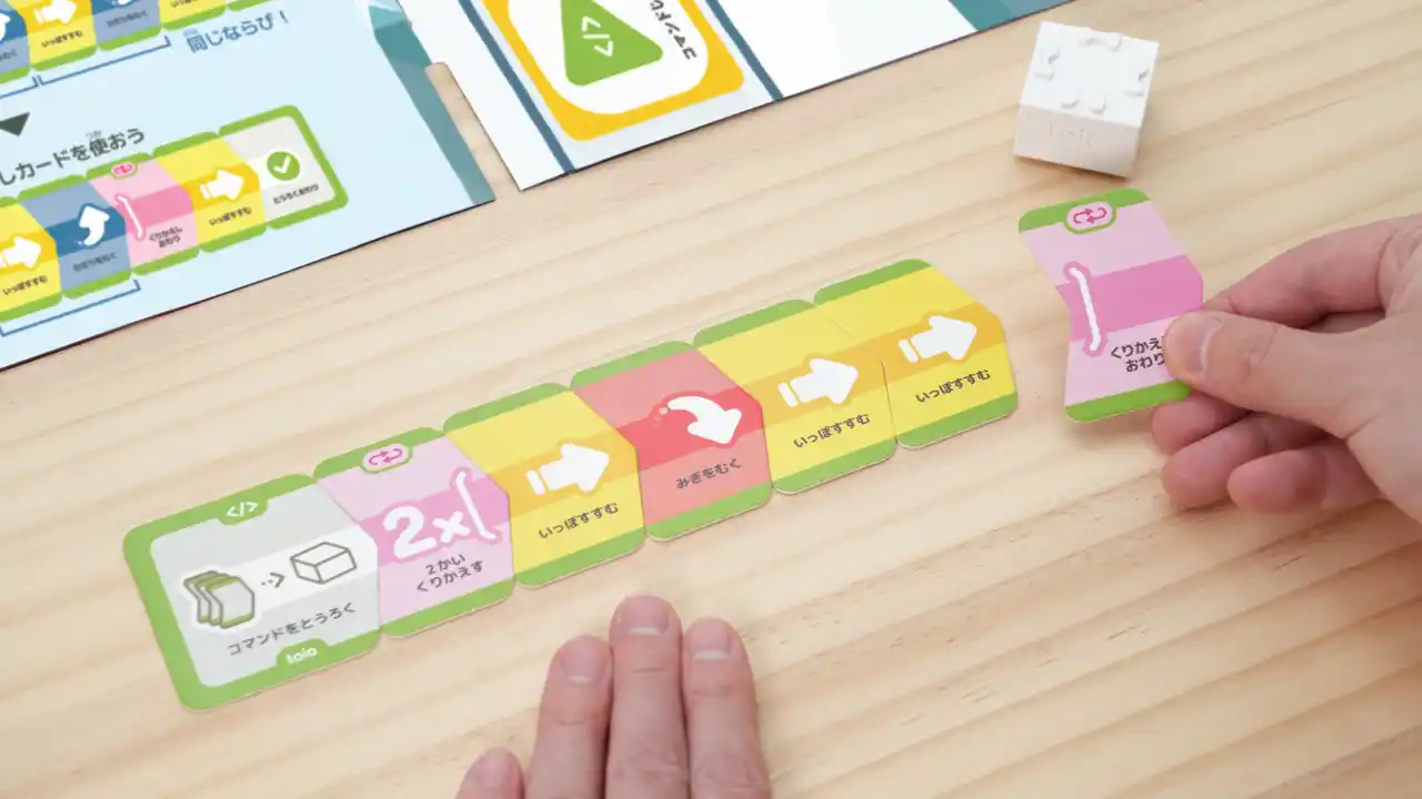 ● 子どもたちが最後まで飽きることなく、高い集中力を維持して取り組めるカード型プログラミング教材である。 |