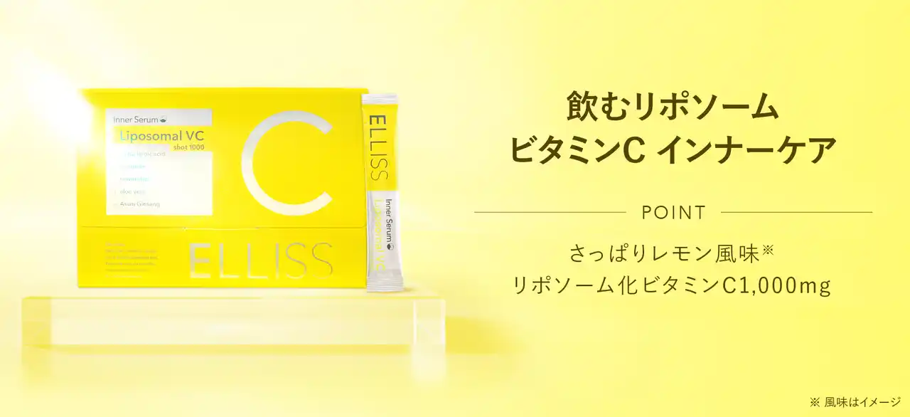 | 『ELLISS リポソーマルVC ショット1000』は、ビタミンCをリポソーム化することで、吸収効率に配慮した設計のインナーケアサプリメントです。 | |||